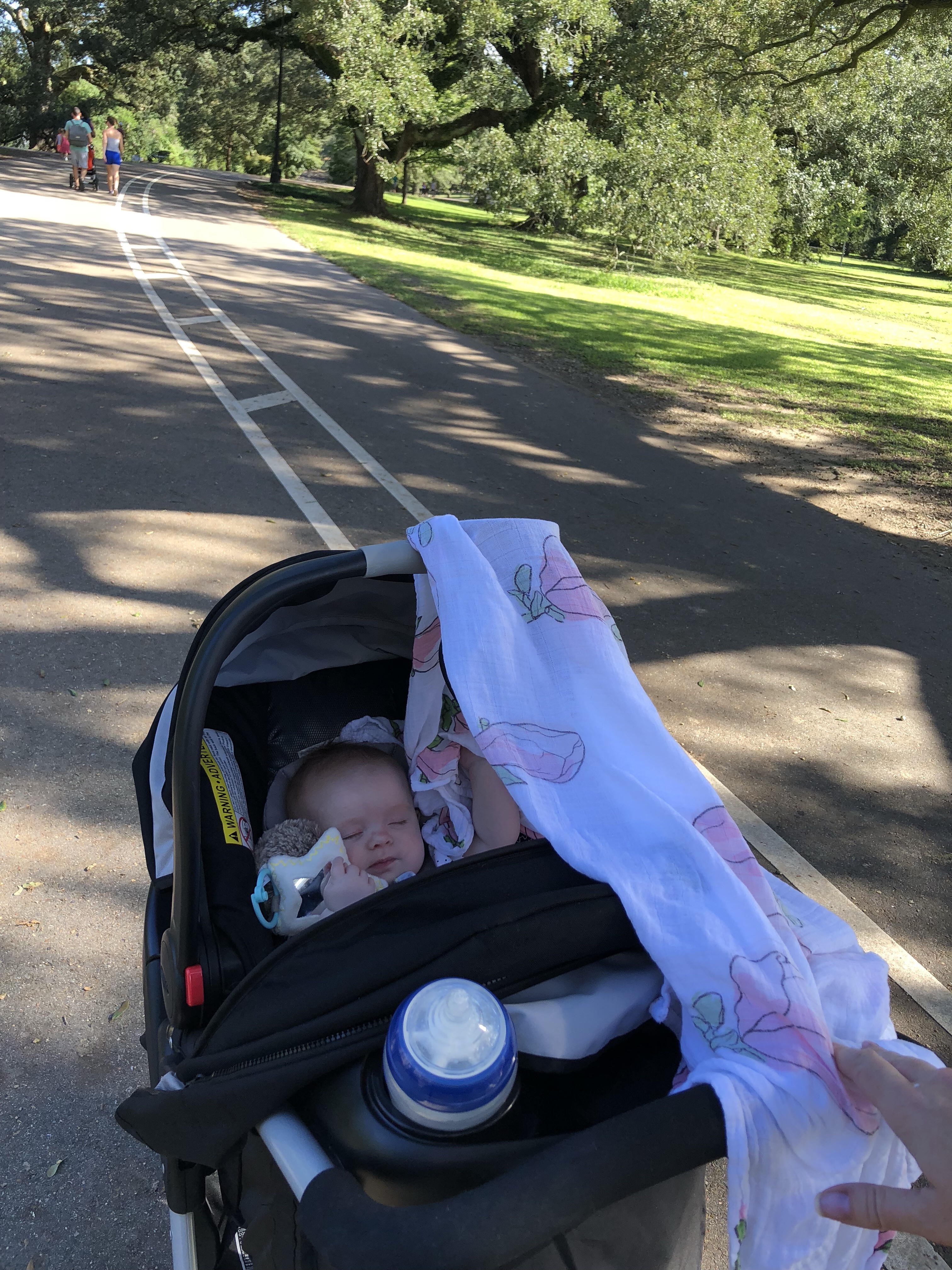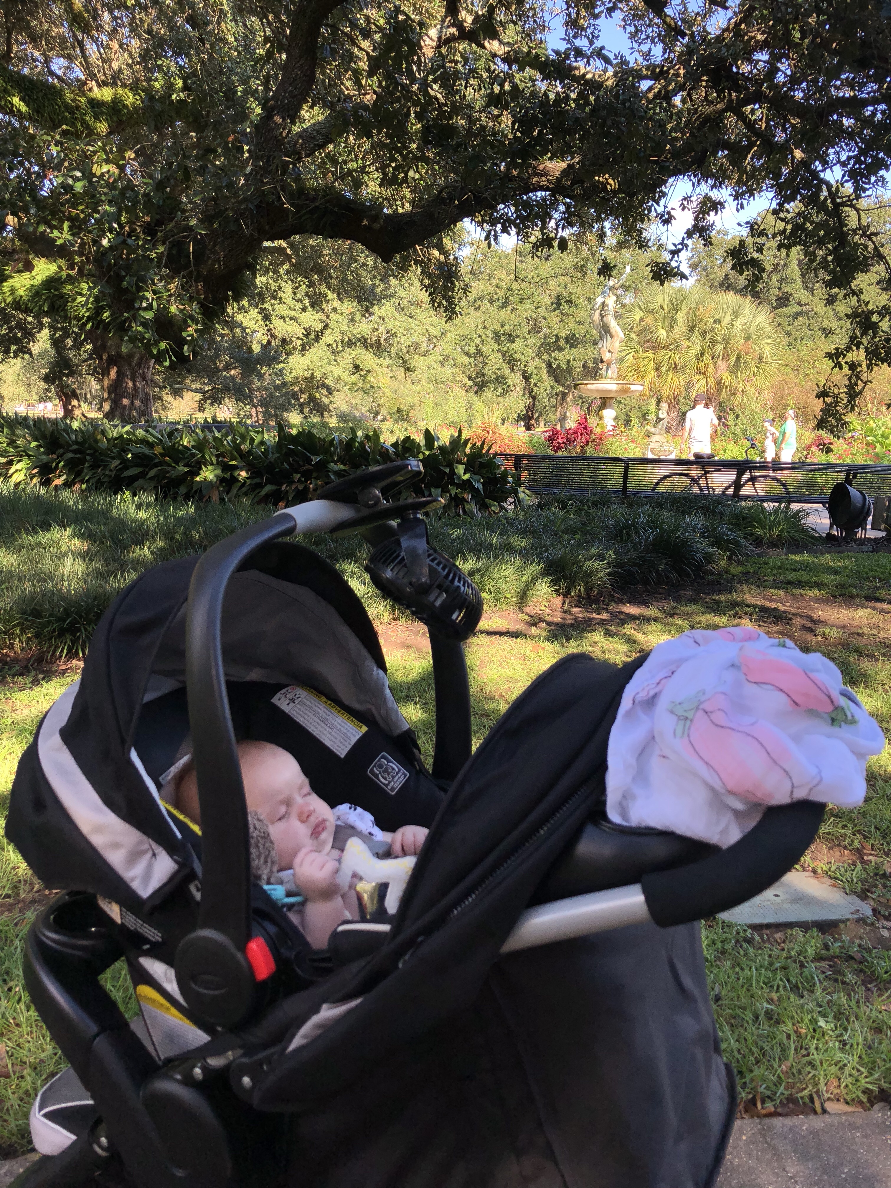 I love hanging out with my mom. Today we are at Audubon Park in Uptown, New Orleans. There’s a paved walking path around the park almost two-miles long with many pretty sites and sounds along the way. We just arrived, which is my cue to fall asleep and miss it all! But it’s ok, I’ll give you the tour while I’m sleeping (I’m a great multi-tasker like my mom and dad)!
